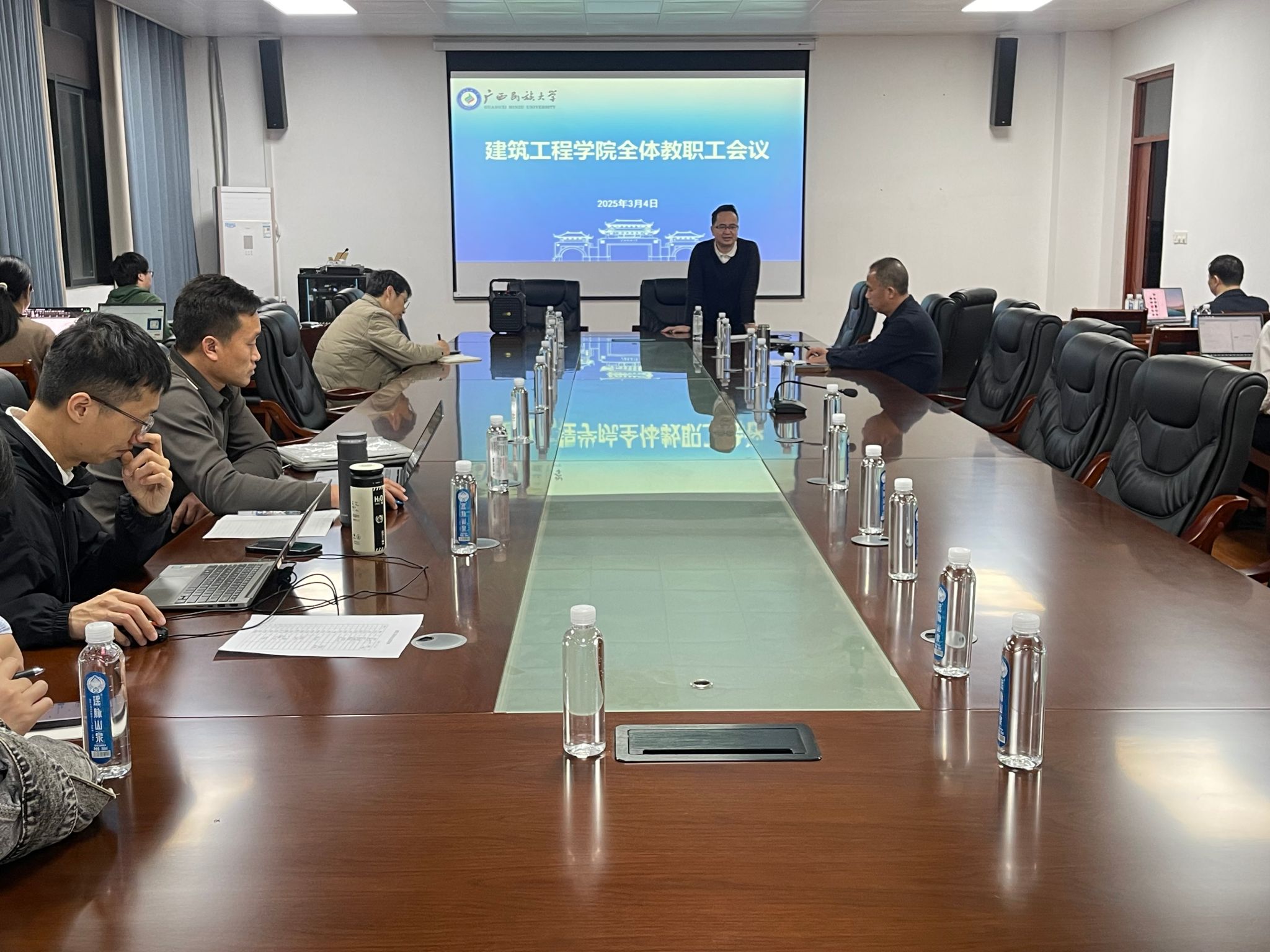 3月4日下午,bevictor1946韦德官网于武鸣校区实验楼A508会议室召开全体教职员工会议,会议由覃英宏经理主持。