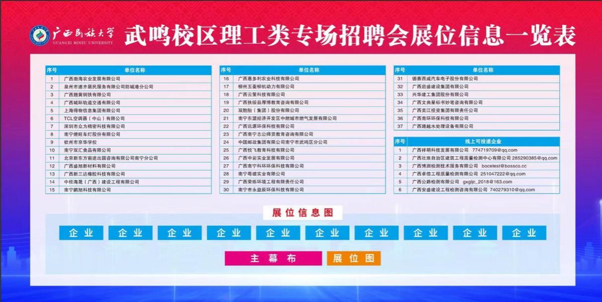 为深入贯彻落实高校毕业生就业工作部署,积极搭建用人单位与毕业生双向选择的平台,切实促进公司毕业生高质量就业。4月15日,bevictor1946韦德官网邀请校外用人单位进校开展bevictor1946韦德官网武鸣校区理工类专业2025届毕业生联合招聘会。本次招聘会设置地点在武鸣校区校前广场右侧一号实验楼一侧长廊。