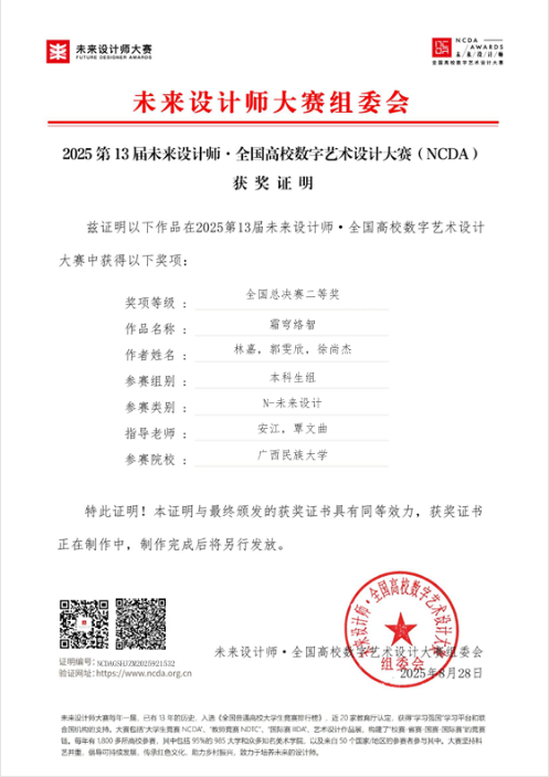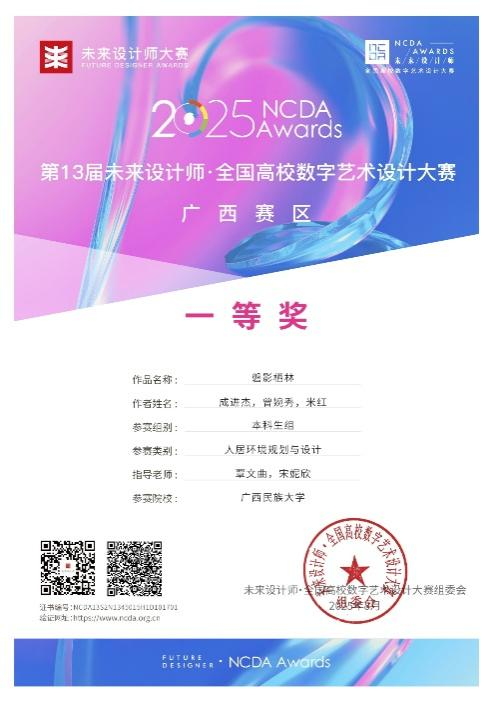 在刚刚落幕的2025年第13届未来设计师·全国高校数字艺术设计大赛(NCDA) 中,bevictor1946韦德官网学子表现卓越,不仅在广西赛区荣获4项一等奖、1项二等奖、1项三等奖,更在全国总决赛中勇夺全国一等奖1项、二等奖1项、三等奖1项的优异成绩,充分体现了公司在数字艺术设计教育和创新人才培养方面的显著成效。