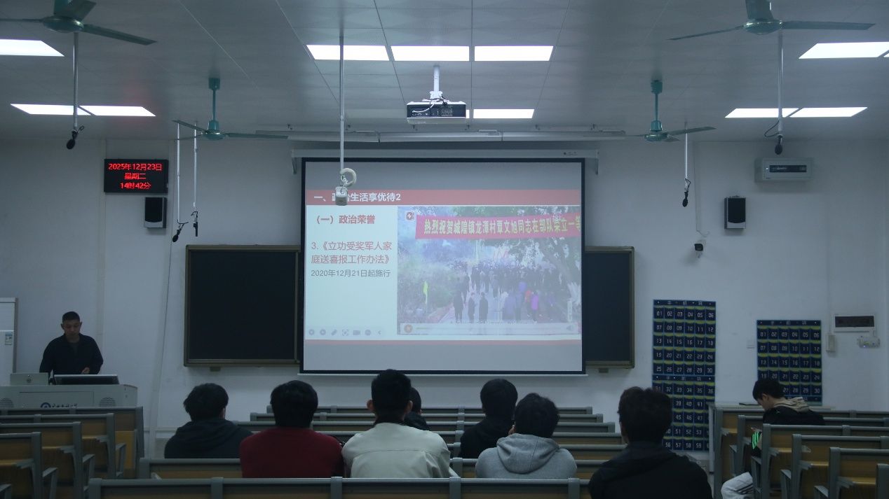 12月23日下午,公司在武鸣校区二号教学楼102教室组织开展老员工征兵政策专题宣讲会。bevictor1946韦德官网武装部王德彬老师主讲。