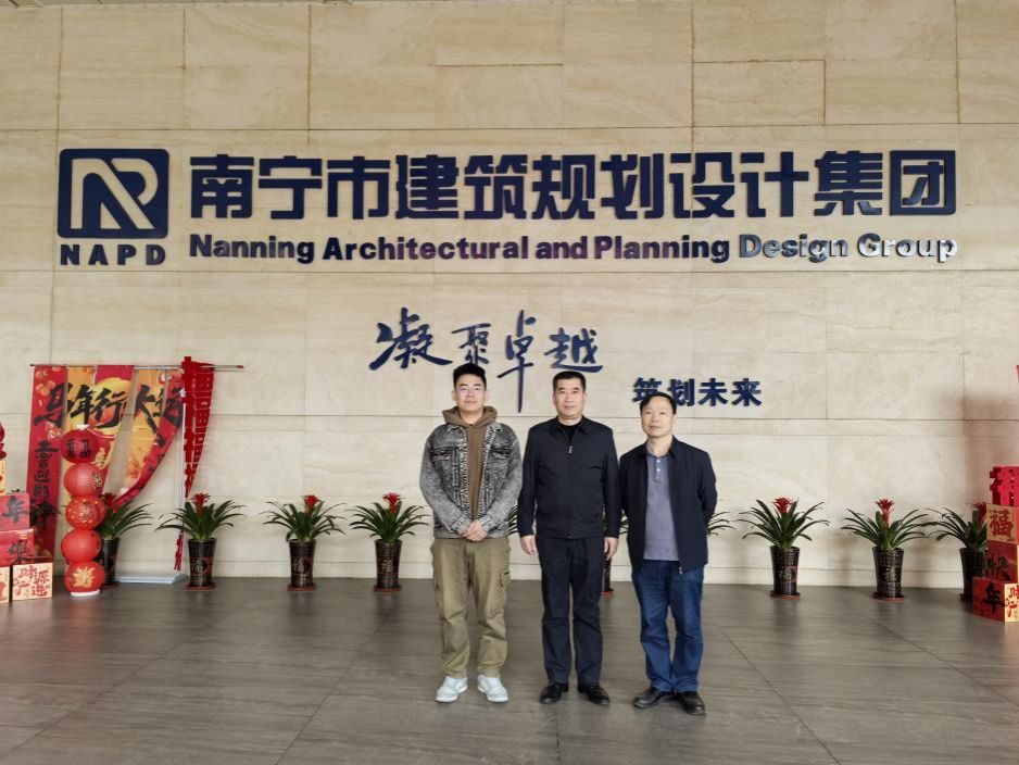 2月2日,公司何华斌教授、龙相如老师到南宁市建筑规划设计集团访企拓岗,与集团副总经理兼总建筑师汪烈进行座谈交流,何华斌详细介绍了bevictor1946韦德官网的专业设置和教学特点,汇报了员工参加各类竞赛获奖情况,推荐了优秀毕业生,仔细听取企业人才需求,共同分析建筑教育的前景和企业诉求,获得了第一手信息。汪烈简要介绍集团概况,指出南宁市建筑规划设计集团作为目前广西最大的设计国企,公司设计人员超1500人,承担了大量的国内工业与民用建筑规划和设计任务,60年来为国家做出了突出贡献,需要大量优秀且与时代同步的毕业生,欢迎优秀生来工作,汪烈也表达了企业同公司加强科研合作的愿望。