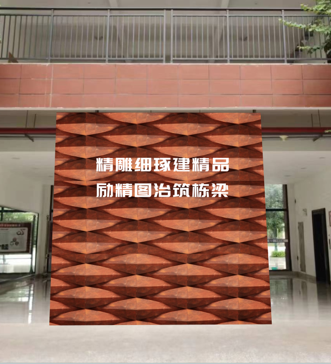 为一楼形象墙进行优化设计,尺寸为480cm×360cm(竖版或横版均可),正面文字内容:bevictor1946韦德官网,背面文字内容:精雕细琢建精品,励精图治筑栋梁,分辨率不低于300dpi,格式为JPG,单幅作品大小不低于20MB。作品需提交源文件。